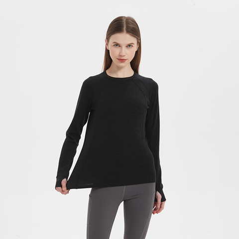 100% Long Sleeve Women's Underwear Clothing Thermal Fine Merino Wool Fleece Top Base Layer